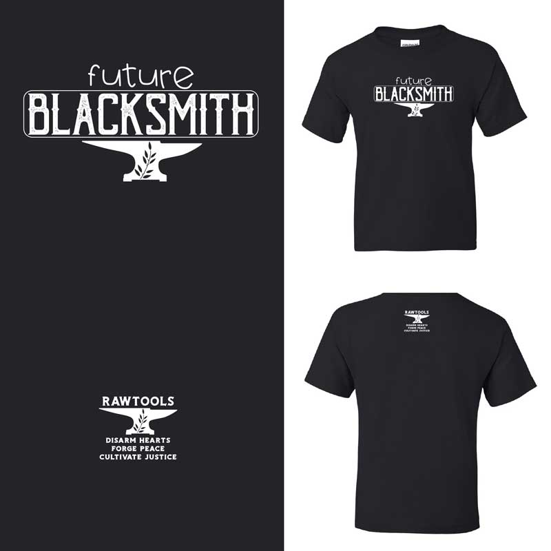 Perfect for the growing blacksmith who is ready to transform their community! Black shirt with white art and RAWtools logo on the back.