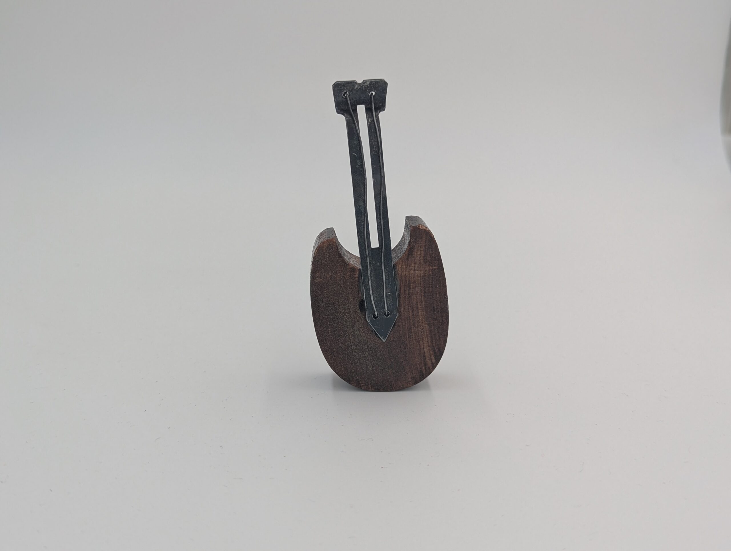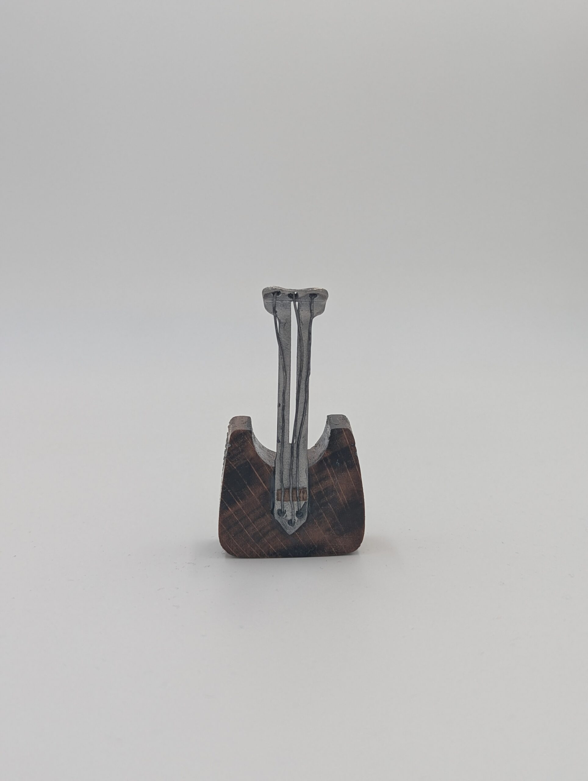 Bring hope and healing to your holidays with an Instrument of Peace! Made entirely from destroyed gun parts. The guitar body is made from the cross section of a wooden barrel grip (shape varies). The Neck is made from the rear site of a rifle. Metal strings are made from magazine tube springs from long guns. Includes a clear loop for hanging. Size varies from 3-4 inches high and about 1.25 inches wide, give or take a little bit.